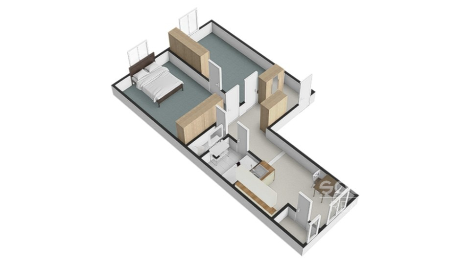 Popis vybaveníKuchyňská linka, skříně, sprchový kout, WC, postel.