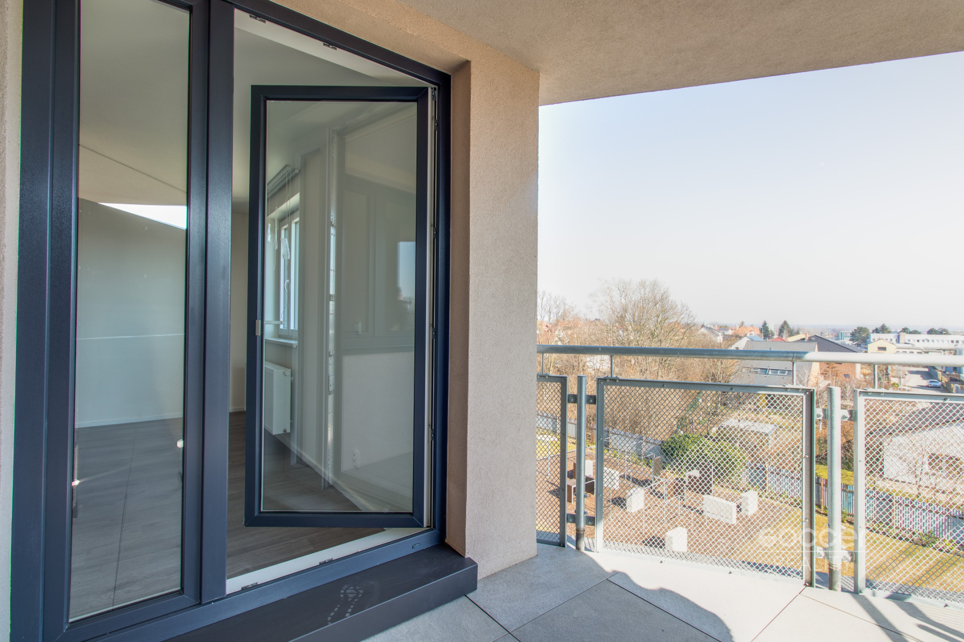 Soccer Reality vám zprostředkuje pronájem bytu v novostavbě dokončené v roce 2024, o dispozici 2+kk a celkové výměře 57 m2, nacházejícího se ve 3. nadzemním podlaží ze 4. Svou výměrou výrazně převyšuje běžné byty o dispozici 2+kk, jejichž podlahová plocha bývá obvykle menší. Byt je nadstandardně vybaven moderní kuchyňskou linkou včetně všech vestavných spotřebičů, v ložnici i na chodbě jsou prostorné vestavěné skříně, které zajišťují dostatek úložného prostoru. Koupelna je moderní, vybavená prostorným sprchovým koutem a je společná s WC. Přípojka na pračku je k dispozici přímo v koupelně. Na podlahách jsou plovoucí podlahy a dlažba. Na oknech jistě oceníte závěsy i záclony. Všechna okna jsou orientována na východ. Na rohový balkon o výměře 8,72 m2 je vstup z obývacího pokoje. Výhled z bytu je velmi příjemný, nikdo vám nebude hledět do oken a narušovat tak vaše soukromí. K bytu náleží také venkovní vyhrazené parkovací stání. Před domem se navíc nachází venkovní fitness zóna.