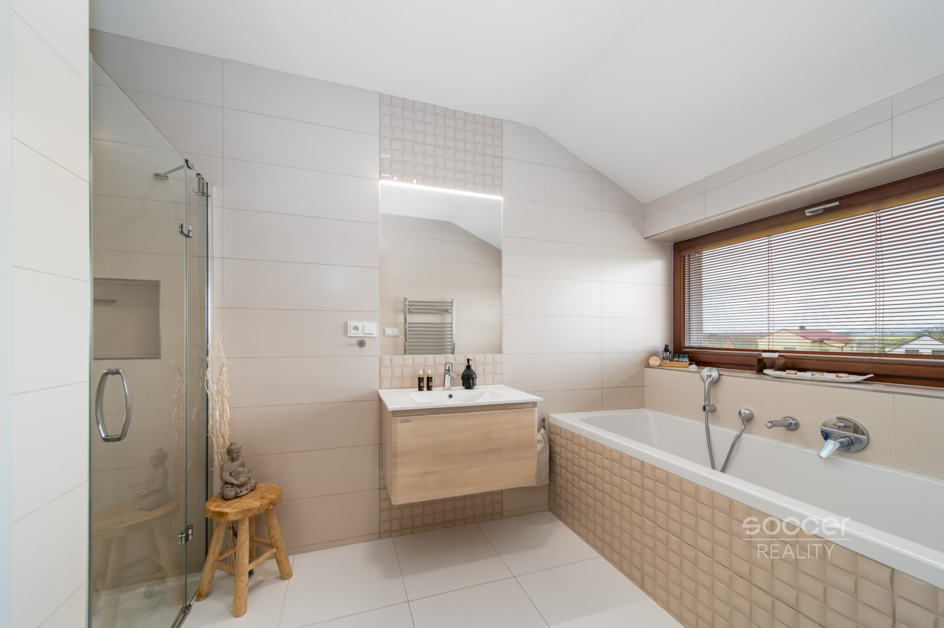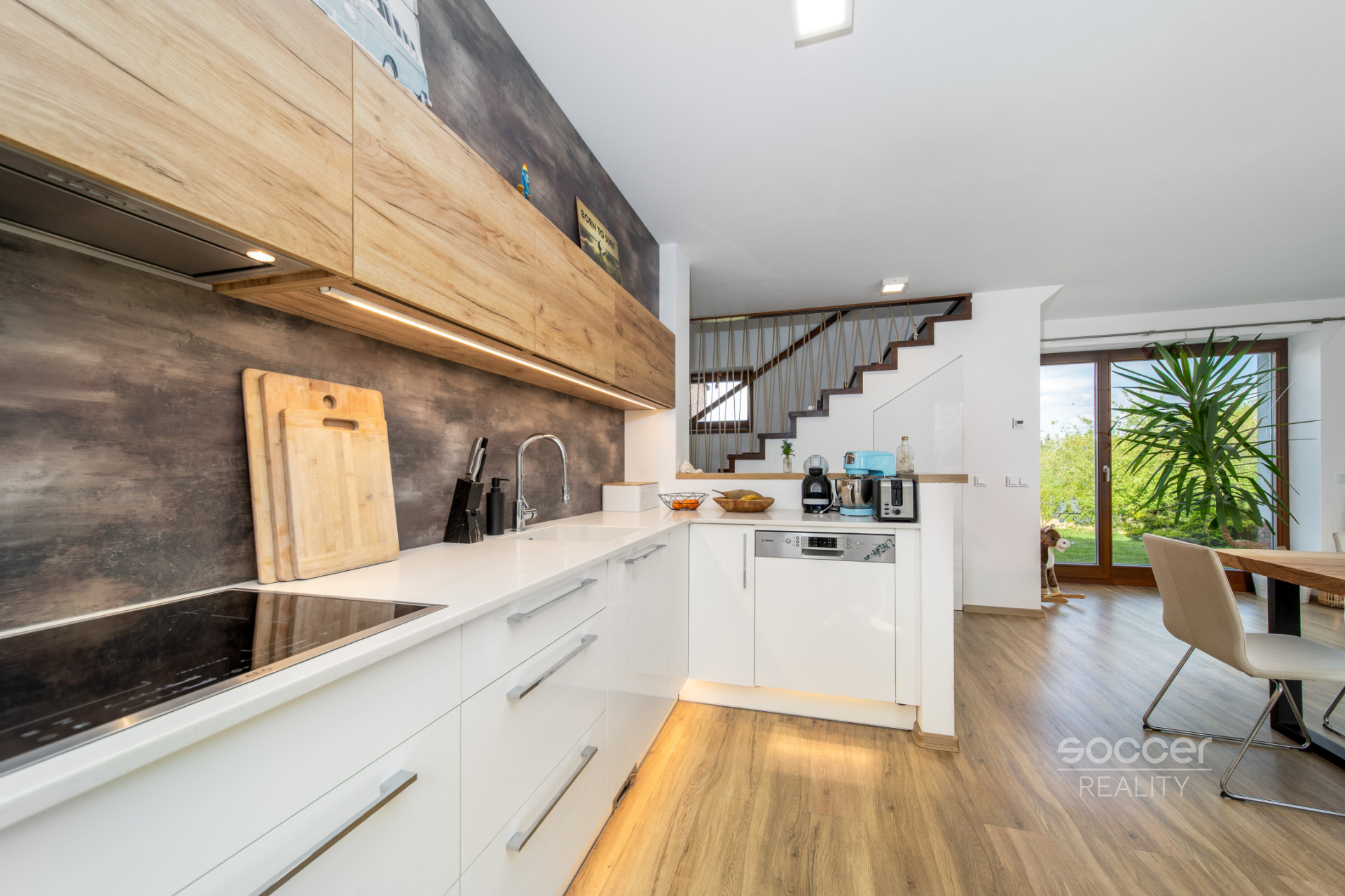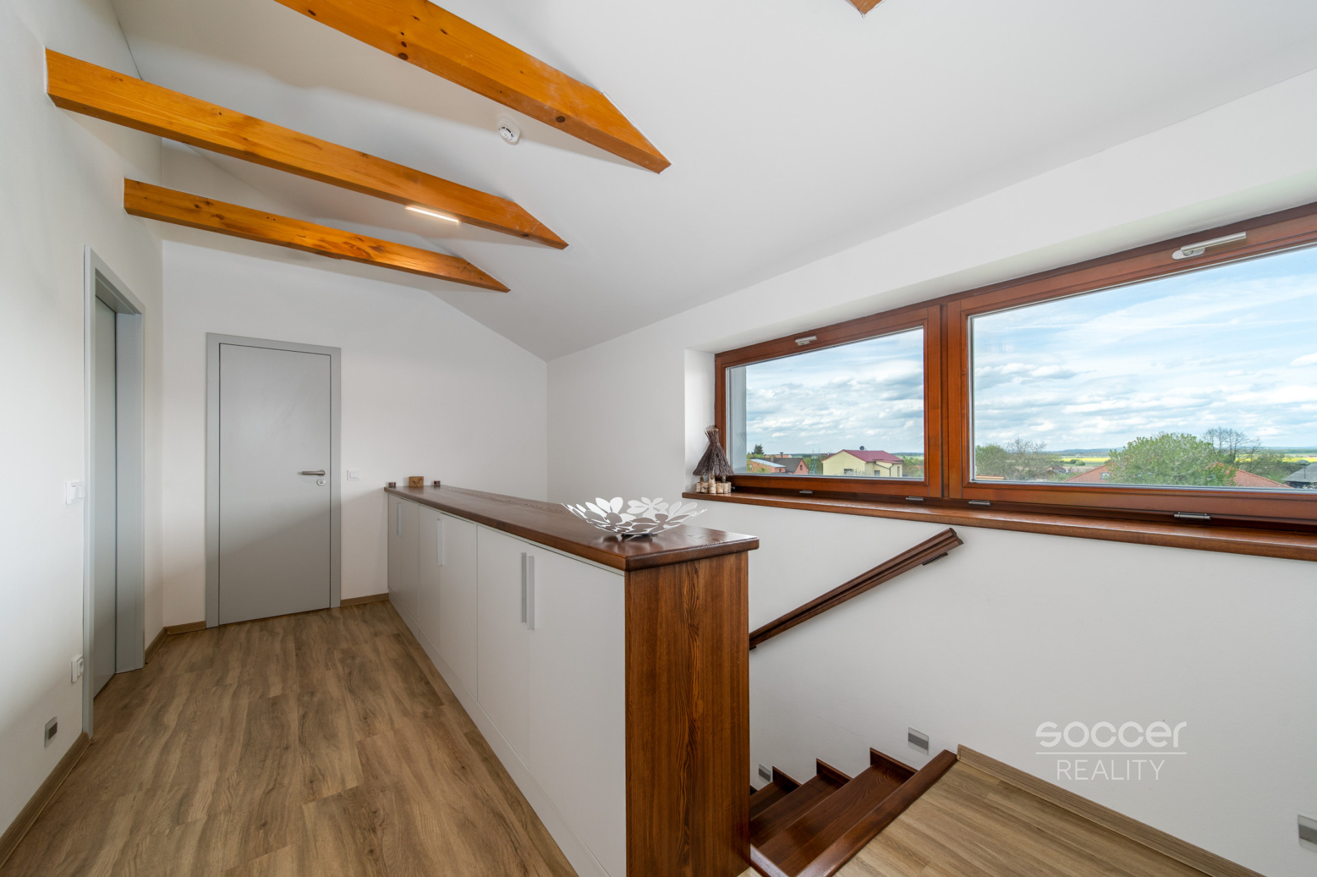 Velmi vkusný dům vám poskytne velkorysé zázemí ve dvou podlažích. Dispozičně je řešen jako 5 + kuchyňský kout + dvě koupelny + terasa + dvougaráž + dva sklady. Pro celý interiér jsou charakteristické vysoce kvalitní materiály. Nadchne vás také praktické technické zázemí jako tepelné čerpadlo, krb, solární panely, studna pro závlahu zahrady. Dům je napojen na veřejný vodovod i kanalizaci, byl dokončen a zkolaudován na konci roku 2017. Díky zateplení, pokročilým technologiím a efektivním způsobům vytápění dosahuje mimořádně příznivé režie cca 3000 Kč/měsíc a pyšní se energetickou třídou B - Velmi úsporná.