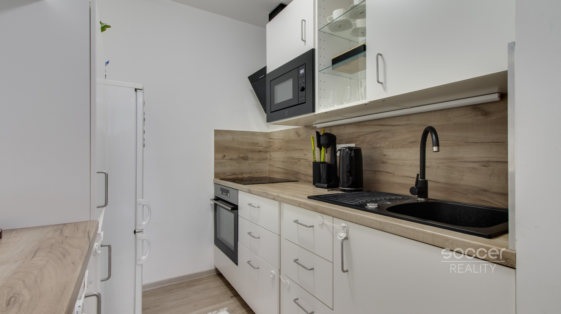 Byt prošel kompletní rekonstrukcí. V bytě nechybí vestavěné skříně na chodbě pro maximální efektivitu místa, moderní kompletně vybavená kuchyň a koupelna se sprchovým koutem a pračkou.