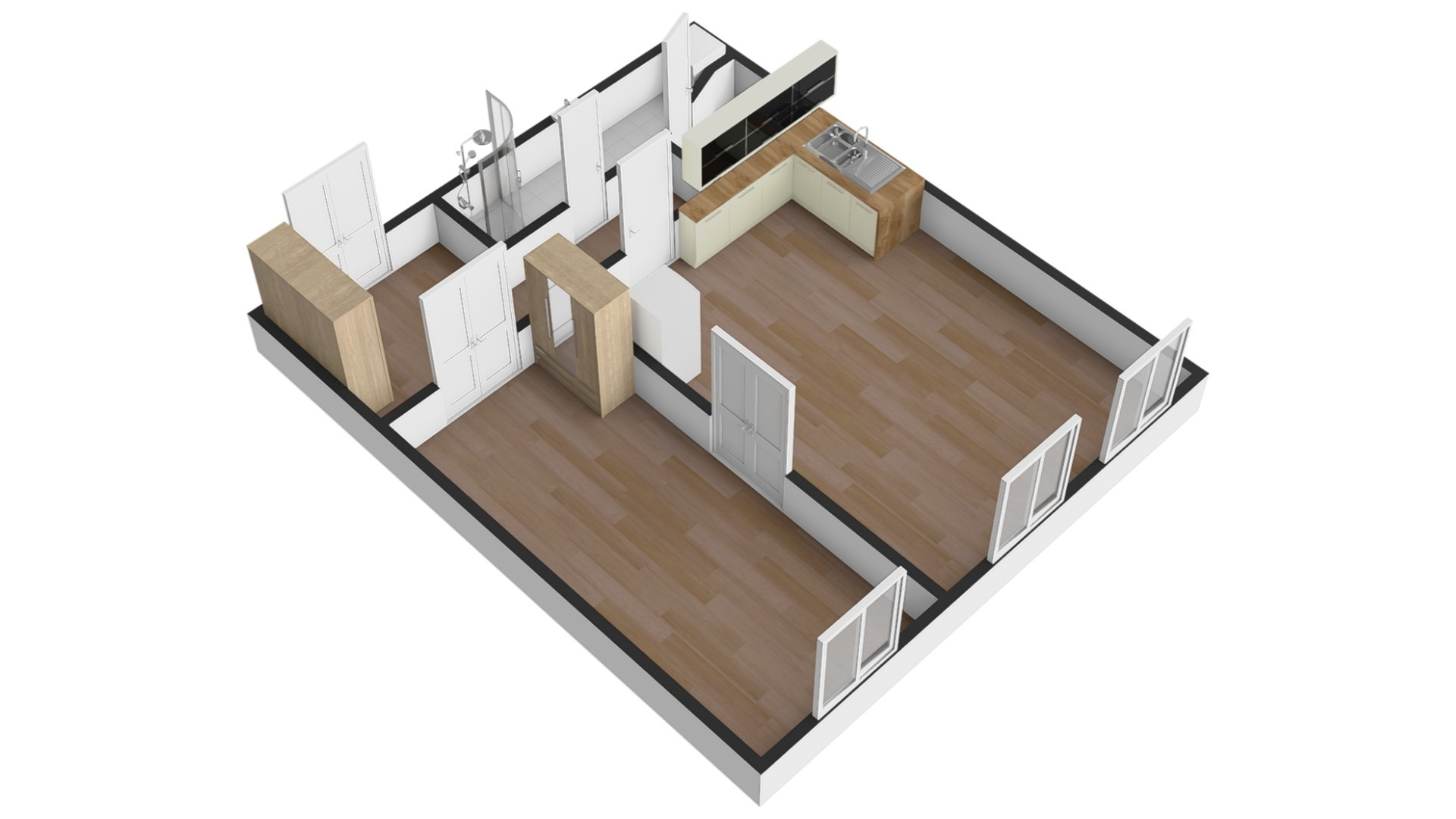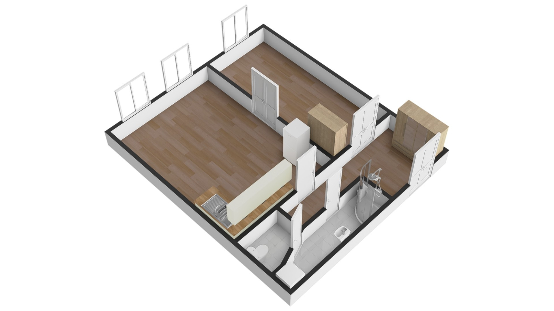 Byt po rekonstrukci nabízí praktické řešení se dvěma neprůchozími pokoji a dostatkem úložného prostoru.