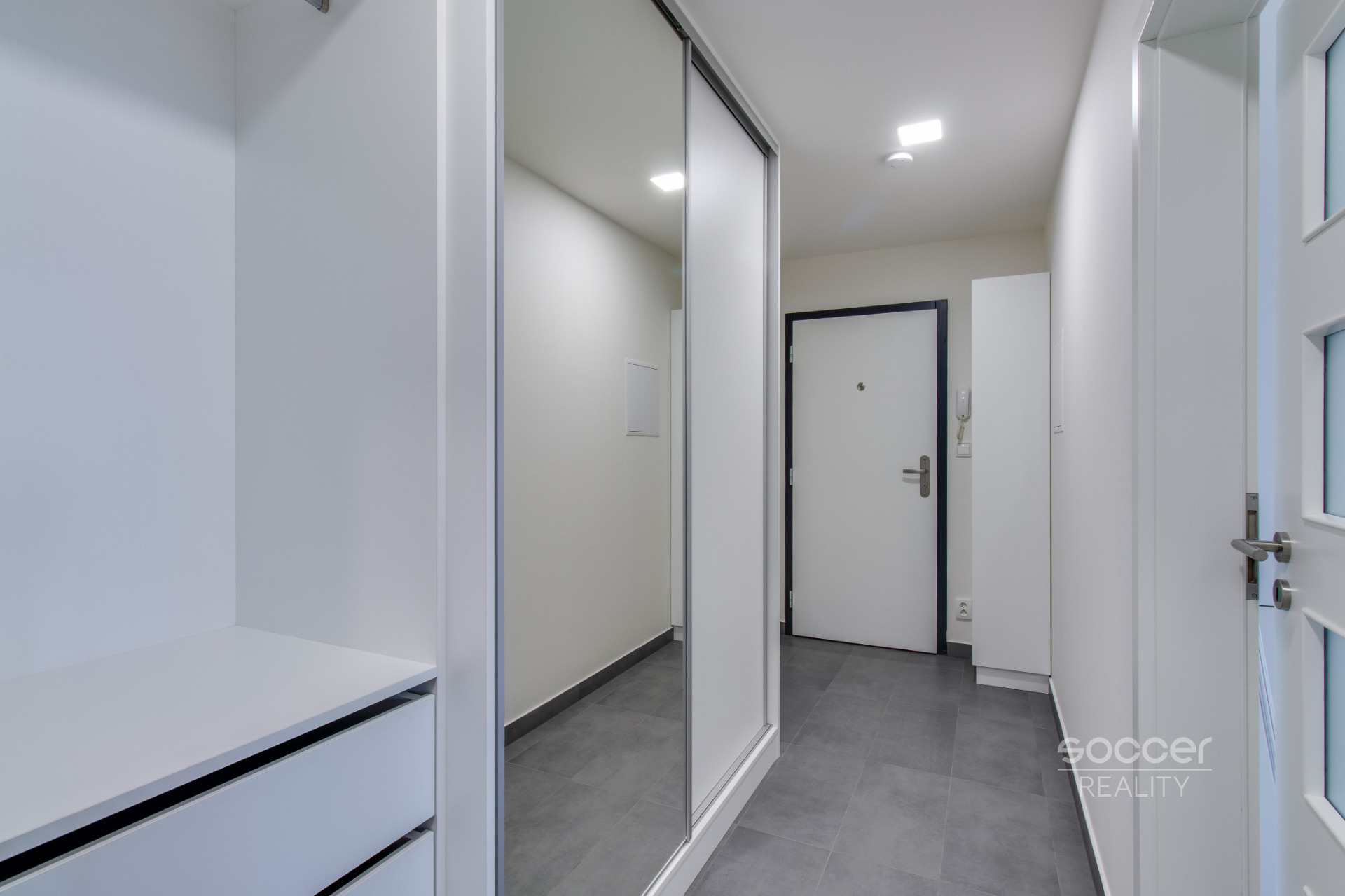 Soccer Reality vám zprostředkuje pronájem bytu v novostavbě dokončené v roce 2024, o dispozici 2+kk a celkové výměře 57 m2, nacházejícího se ve 3. nadzemním podlaží ze 4. Svou výměrou výrazně převyšuje běžné byty o dispozici 2+kk, jejichž podlahová plocha bývá obvykle menší. Byt je nadstandardně vybaven moderní kuchyňskou linkou včetně všech vestavných spotřebičů, v ložnici i na chodbě jsou prostorné vestavěné skříně, které zajišťují dostatek úložného prostoru. Koupelna je moderní, vybavená prostorným sprchovým koutem a je společná s WC. Přípojka na pračku je k dispozici přímo v koupelně. Na podlahách jsou plovoucí podlahy a dlažba. Na oknech jistě oceníte závěsy i záclony. Všechna okna jsou orientována na východ. Na rohový balkon o výměře 8,72 m2 je vstup z obývacího pokoje. Výhled z bytu je velmi příjemný, nikdo vám nebude hledět do oken a narušovat tak vaše soukromí. K bytu náleží také venkovní vyhrazené parkovací stání. Před domem se navíc nachází venkovní fitness zóna.
