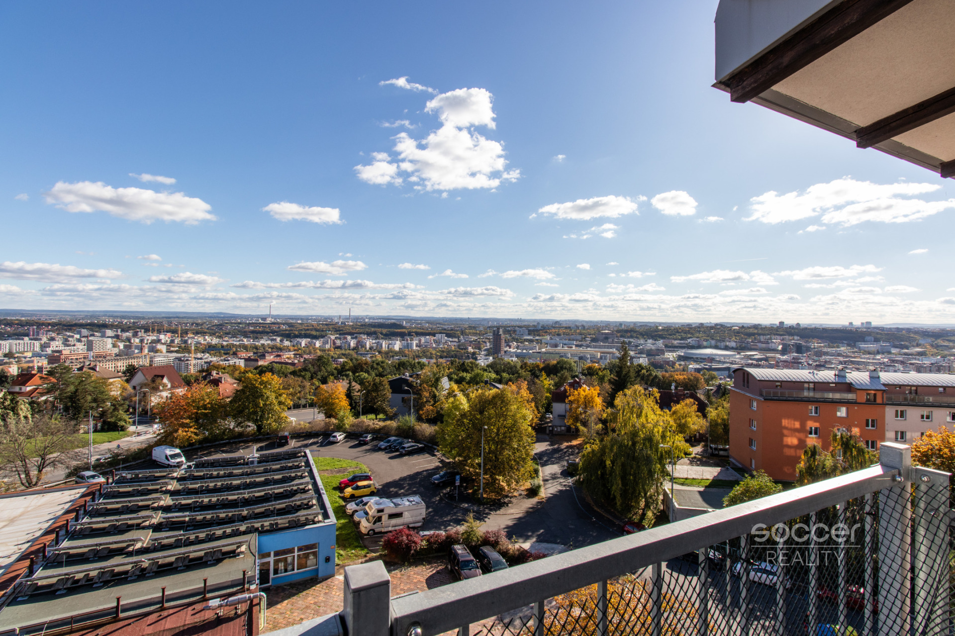 Soccer Reality výhradně zprostředkuje pronájem bytu 2+kk o výměře 65 m2 s balkonem a terasou (15 m2) v nástavbě panelového domu na adrese Cihlářská, Praha. Byt je umístěn v 7. patře a nabízí nadstandardní komfort a prvotřídní výhledy.