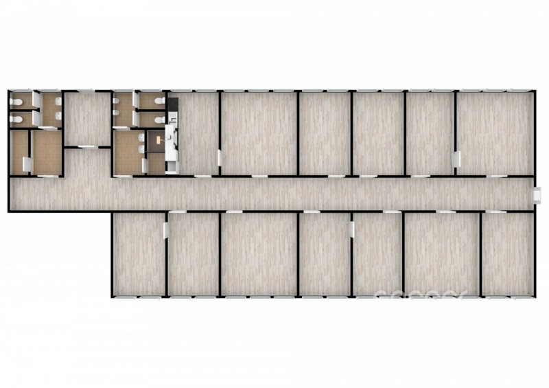 Ve společných prostorách jsou WC muži a ženy, sprcha.